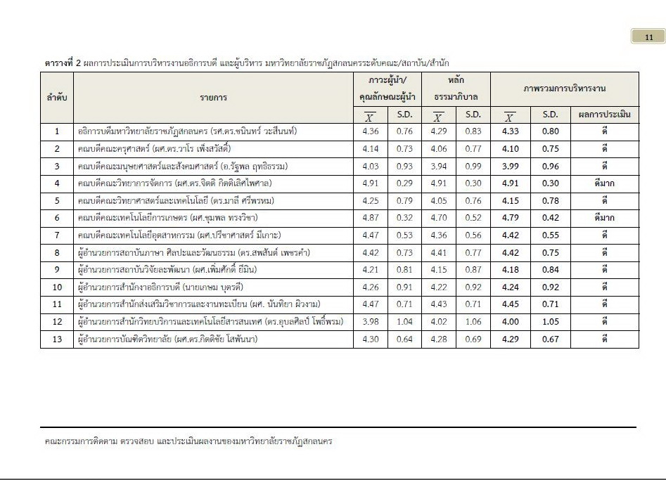 - ตัวบ่งชี้ที่ 7.6 สรุปผลประเมินการบริหารงานของอธิการบดีและผู้บริหารมหาวิทยาลัยราชภัฏสกลนคร ประจำปีงบประมาณ พ.ศ.2556